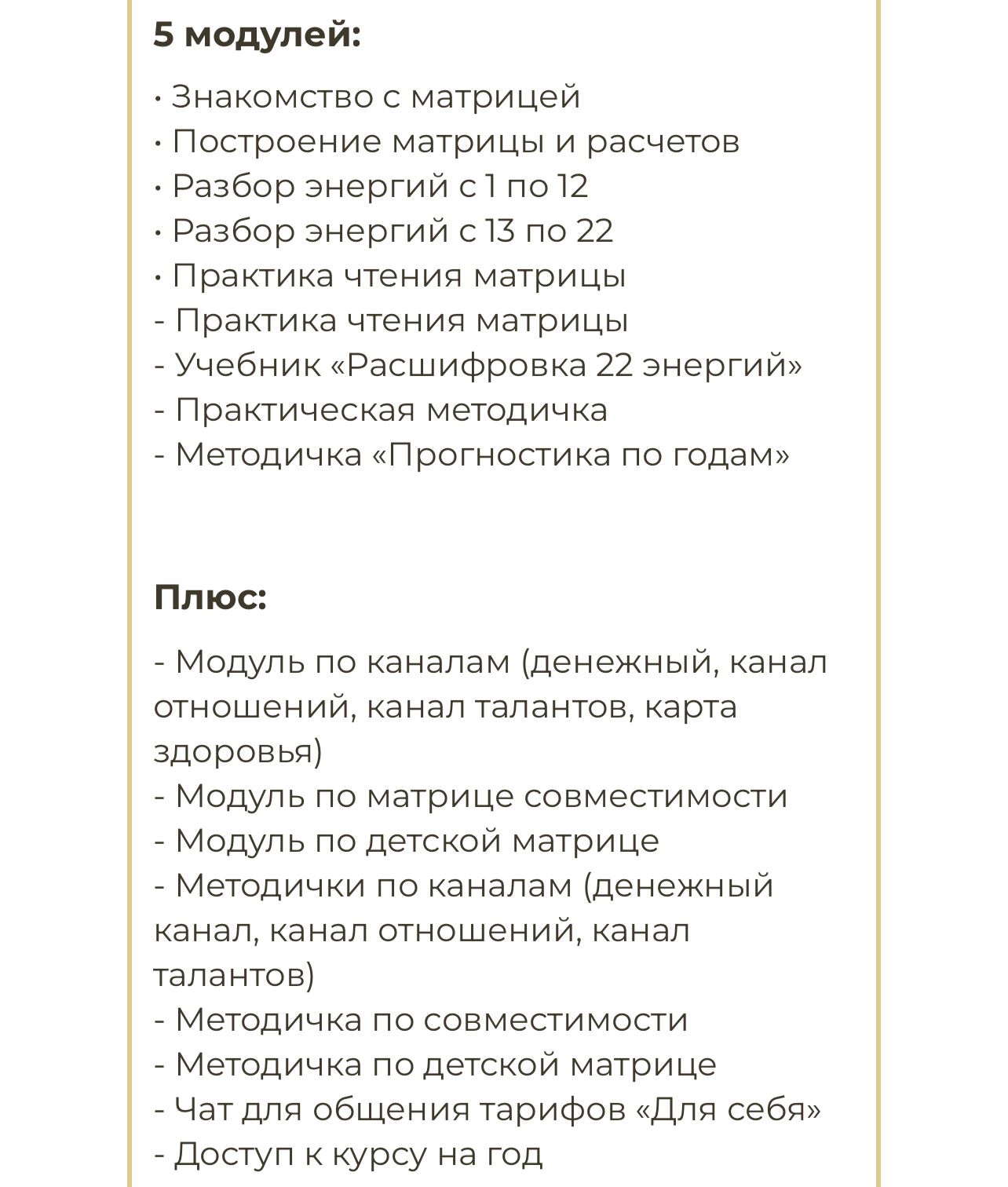 Добрый день, буду очень благодарна если у кого нибудь есть курс Юлия Богацкая - проживая себя 2023 года с расчетами и описанием годовой матрицы 🙏