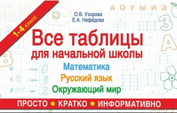 В учебном пособии известных педагогов О.В. Узоровой, Е.А. Нефёдовой "Все таблицы для начальной школы. Русский язык. Математика. Окружающий мир" в таблицах представлен материал для начальной школы по русскому языку, математике и окружающему миру. К каждой теме даётся подборка примеров или заданий. Благодаря многообразию познавательных упражнений школьники будут заниматься с интересом и удовольствием.