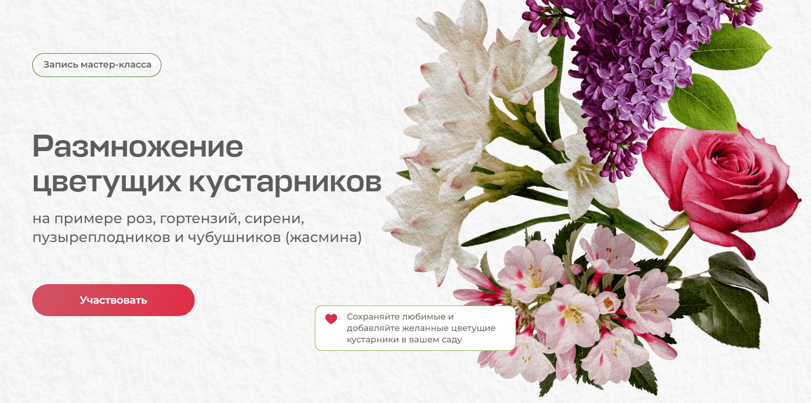 - На мастер-классе вас ждёт практикум по размножению цветочных кустарников